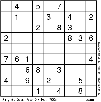 The Daily SuDoku: Mon 28-Feb-2005