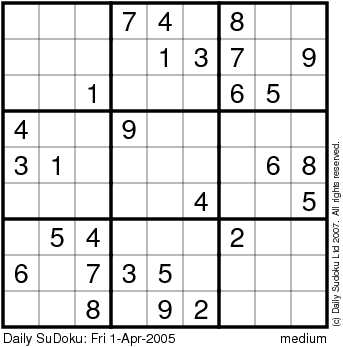 The Daily SuDoku: Fri 1-Apr-2005