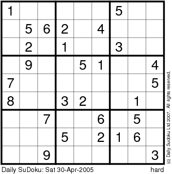 The Daily SuDoku: Sat 30-Apr-2005