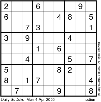 The Daily SuDoku: Mon 4-Apr-2005