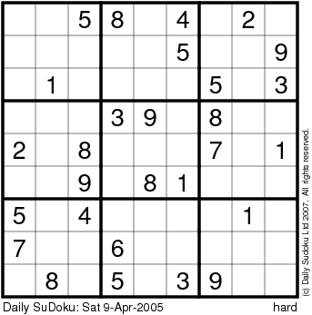 The Daily SuDoku: Sat 9-Apr-2005
