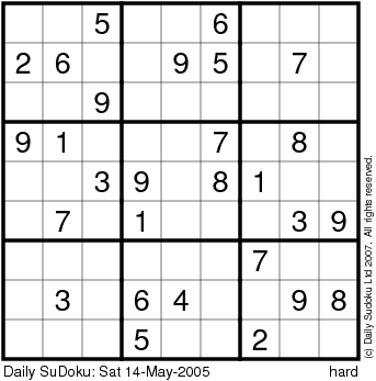 The Daily SuDoku: Sat 14-May-2005