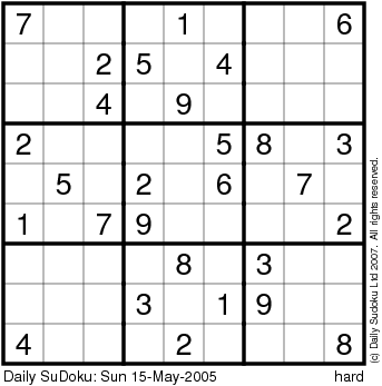 The Daily SuDoku: Sun 15-May-2005