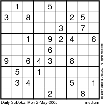 The Daily SuDoku: Mon 2-May-2005