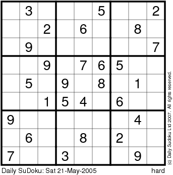 The Daily SuDoku: Sat 21-May-2005