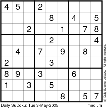 The Daily SuDoku: Tue 3-May-2005