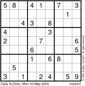 The Daily SuDoku: Mon 30-May-2005
