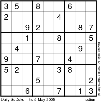 The Daily SuDoku: Thu 5-May-2005