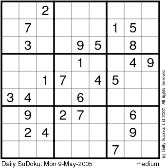 The Daily SuDoku: Mon 9-May-2005
