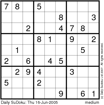 The Daily SuDoku: Thu 16-Jun-2005