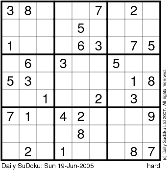 The Daily SuDoku: Sun 19-Jun-2005