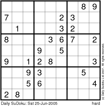 The Daily SuDoku: Sat 25-Jun-2005