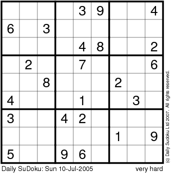 The Daily SuDoku: Sun 10-Jul-2005