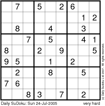 The Daily SuDoku: Sun 24-Jul-2005