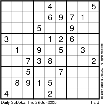 The Daily SuDoku: Thu 28-Jul-2005