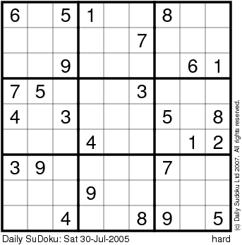 The Daily SuDoku: Sat 30-Jul-2005
