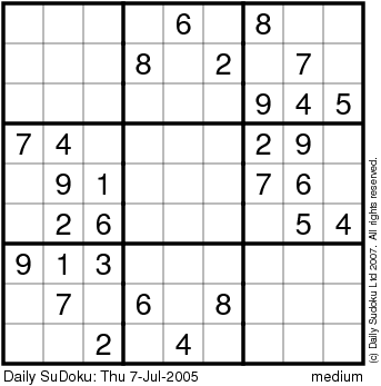 The Daily SuDoku: Thu 7-Jul-2005