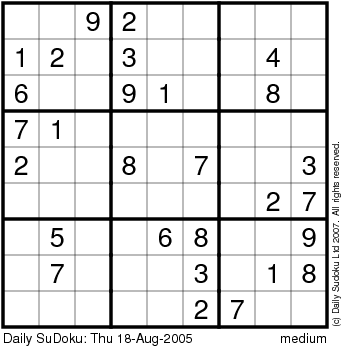 The Daily SuDoku: Thu 18-Aug-2005