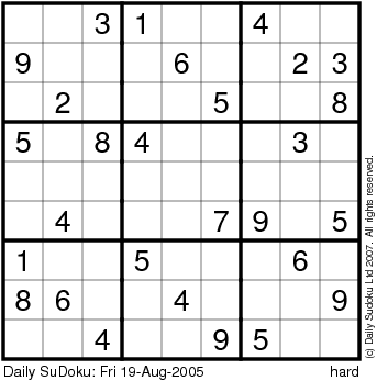The Daily SuDoku: Fri 19-Aug-2005
