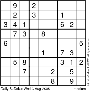 The Daily SuDoku: Wed 3-Aug-2005