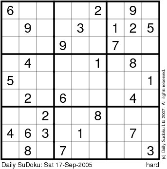 The Daily SuDoku: Sat 17-Sep-2005