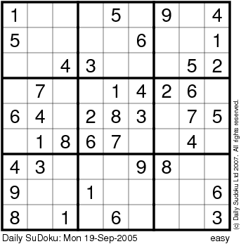 The Daily SuDoku: Mon 19-Sep-2005