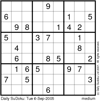 The Daily SuDoku: Tue 6-Sep-2005