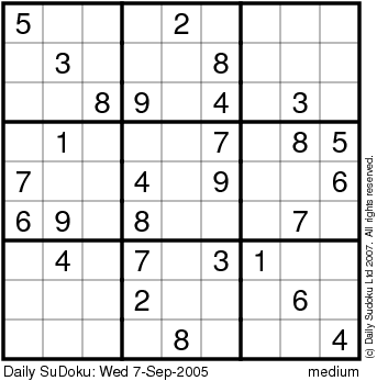 The Daily SuDoku: Wed 7-Sep-2005