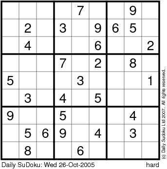 The Daily SuDoku: Wed 26-Oct-2005