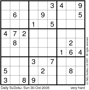The Daily SuDoku: Sun 30-Oct-2005