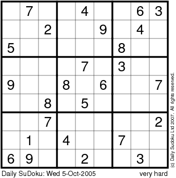 The Daily SuDoku: Wed 5-Oct-2005