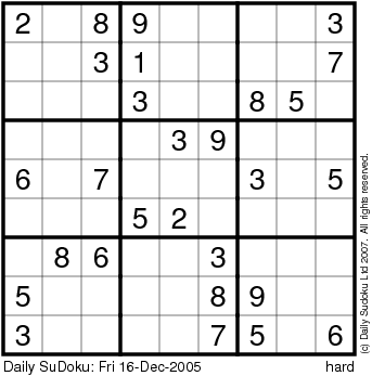 The Daily SuDoku: Fri 16-Dec-2005