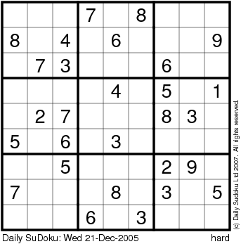 The Daily SuDoku: Wed 21-Dec-2005