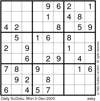 The Daily SuDoku: Mon 5-Dec-2005