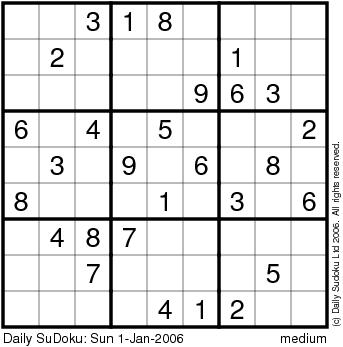 The Daily SuDoku: Sun 1-Jan-2006