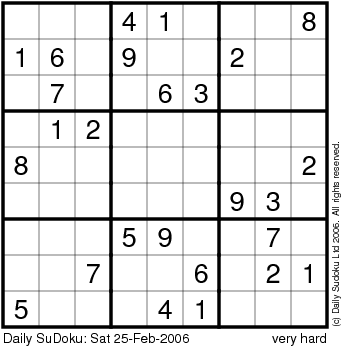 The Daily SuDoku: Sat 25-Feb-2006