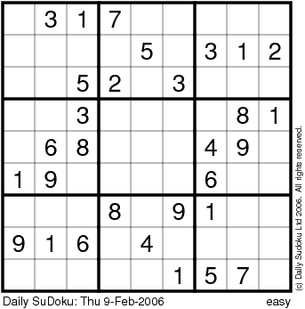 The Daily SuDoku: Thu 9-Feb-2006