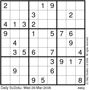 The Daily SuDoku: Wed 29-Mar-2006