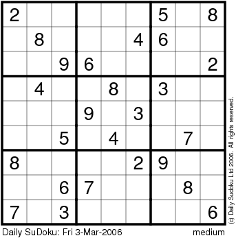 The Daily SuDoku: Fri 3-Mar-2006