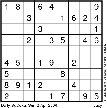 The Daily SuDoku: Sun 2-Apr-2006