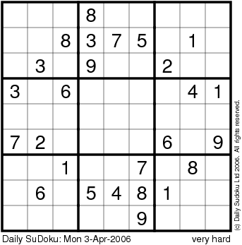 The Daily SuDoku: Mon 3-Apr-2006