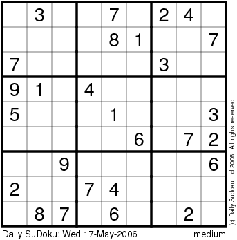 The Daily SuDoku: Wed 17-May-2006