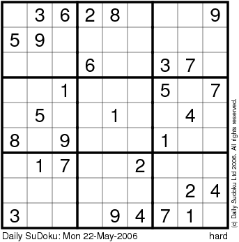 The Daily SuDoku: Mon 22-May-2006