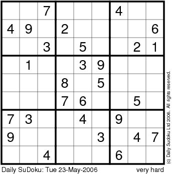 The Daily SuDoku: Tue 23-May-2006