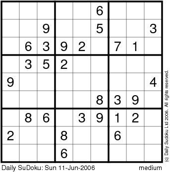 The Daily SuDoku: Sun 11-Jun-2006