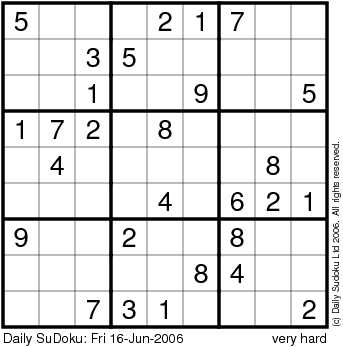 The Daily SuDoku: Fri 16-Jun-2006