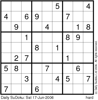 The Daily SuDoku: Sat 17-Jun-2006