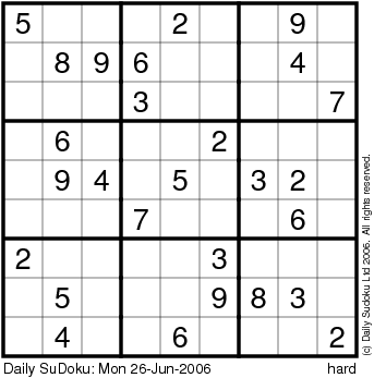 The Daily SuDoku: Mon 26-Jun-2006
