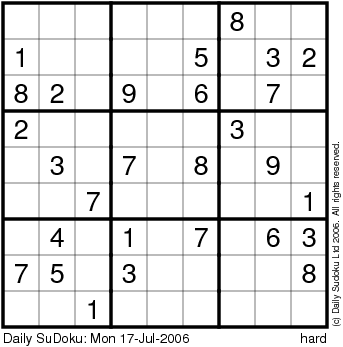 The Daily SuDoku: Mon 17-Jul-2006