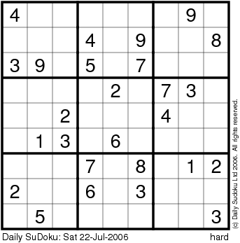 The Daily SuDoku: Sat 22-Jul-2006